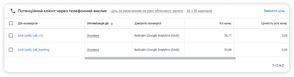 Коли проект прийшов до нас в рекламному кабінеті відслідковували лише відправлені форми. Після обґрунтування необхідності впровадити Call Tracking, ми почали відслідковувати 3 види конверсій: