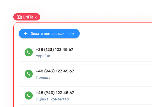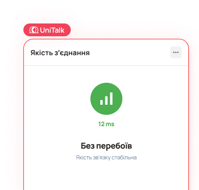Ваші дані, дзвінки і номери — під повним контролем. UniTalk створений з фокусом на максимальну стабільність та безпеку комунікацій навіть під критичними навантаженнямиСпробуйте UniTalk без ризику
