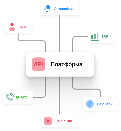 Сумісність з IP-АТС, CRM, ERP, HelpDesk і AI-аналітикою через