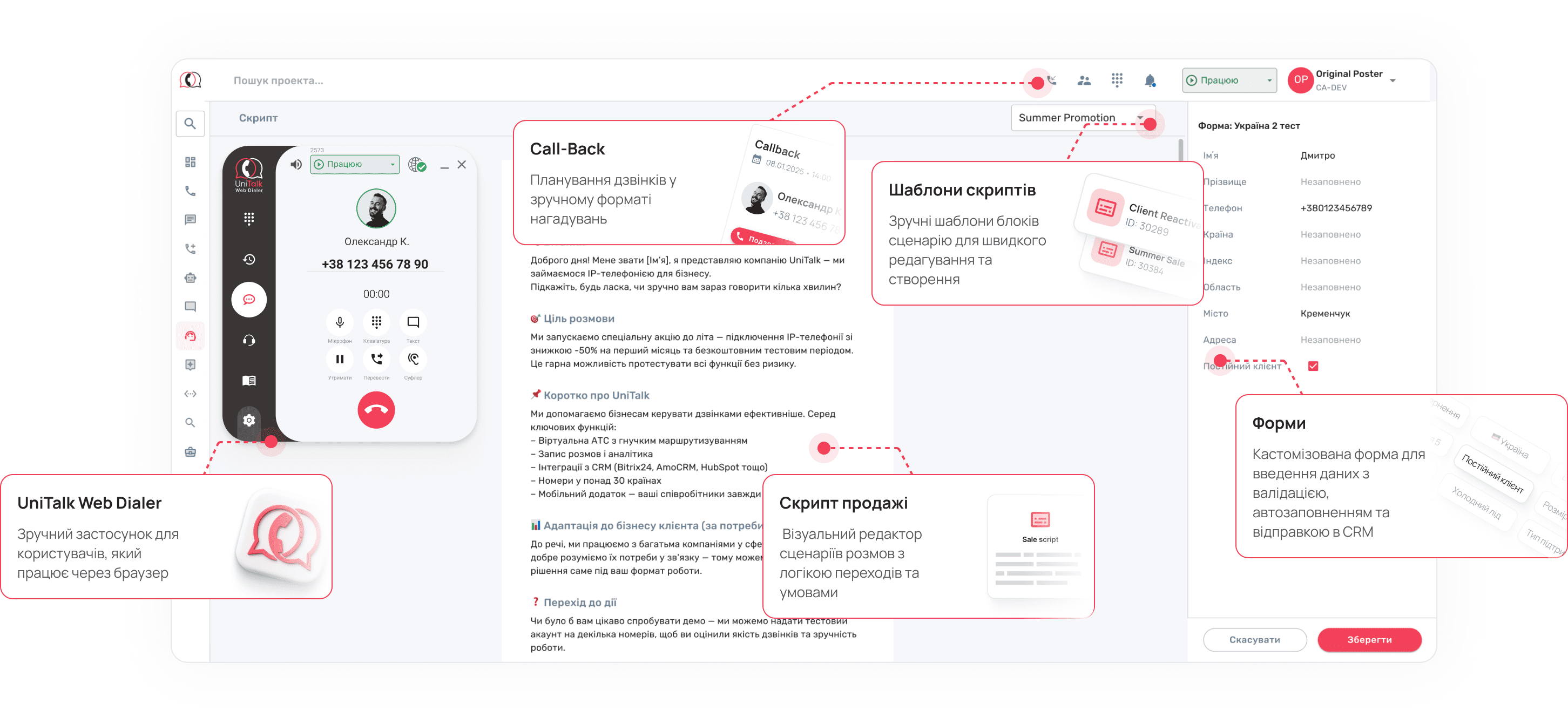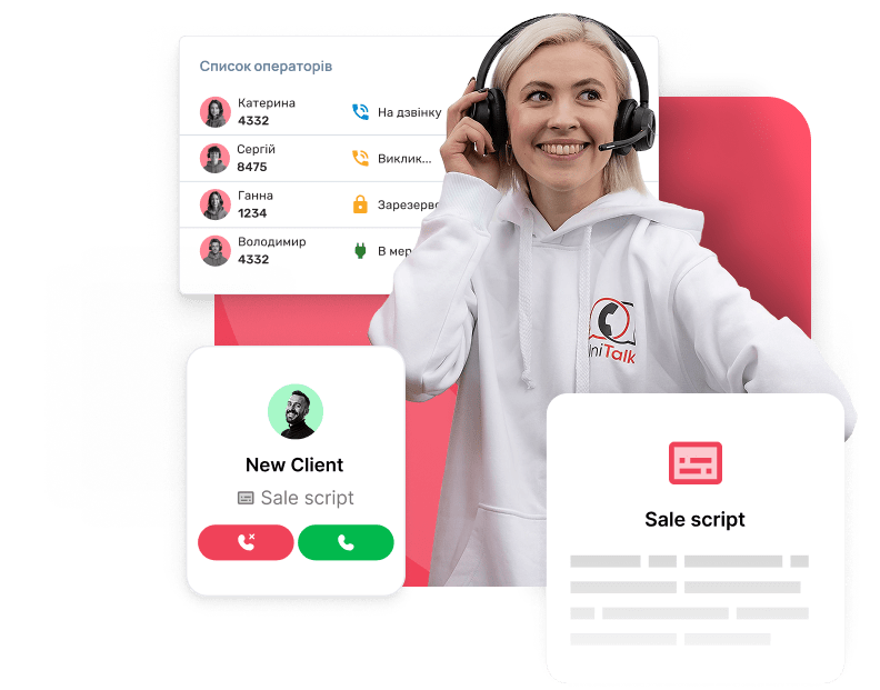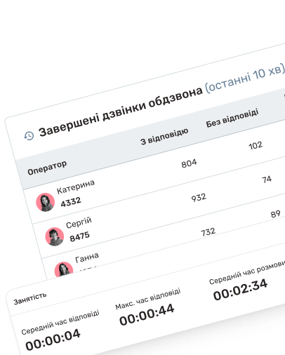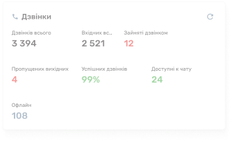 – платформа для повного керування вашим кол-центром або контакт-центромДзвінки, скрипти,чати, аналітика та контроль якості – все в одному вікні. Без зайвих сервісів, без складного налаштування, готово до масштабування