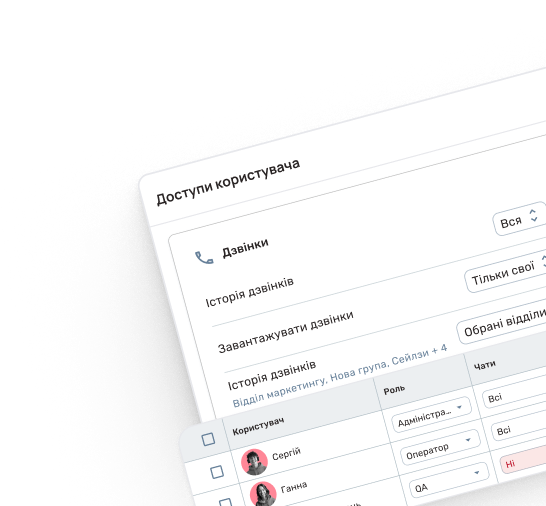 Повністю контролюйте доступи ваших співробітників. Гнучкий розподіл ролей гарантує, що оператори та менеджери бачать тільки ту інформацію, яка необхідна для їхньої роботи. Максимальна безпека та нічого зайвого