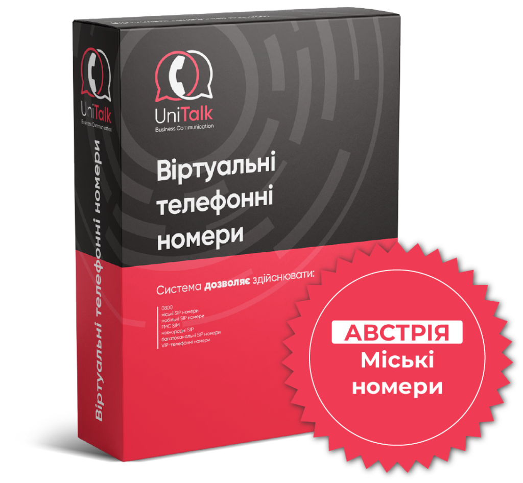 Телефонні номери Австрії – це одна з найпопулярніших послуг UniTalk для бізнесу, яка дає можливість орендувати для подальшого використання міські номери таких міст, як Відень, Грац, Лінц, Зальцбург, Інсбрук та інші австрійські телефонні номери. Віртуальні телефонні номери Австрії можна використовувати на своєму комп’ютері, планшеті або смартфоні, підключити до офісної або віртуальної АТС.