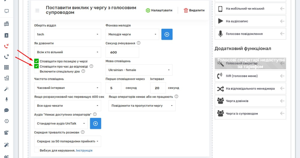 Оновлення UniTalk: Голосові черги із супроводом