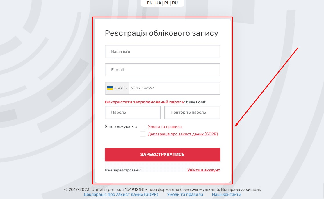 - На сайті UniTalk натисніть “Спробувати 14 днів безкоштовно”: